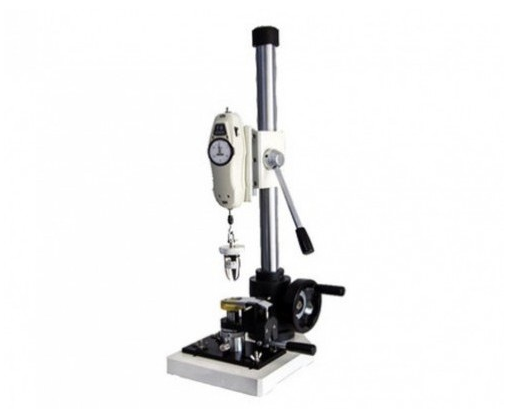 HTP-005 Button Pull Test Machine Button Pull Test Machine is used to determine the holding or breaking strength of prong-ring attached snap  fasteners onto garments. Consists of an Upper Snap Clamp, a Lower Fabric Clamp & Force Gauge mounted on a Stand. The snap component is gripped by the Upper Snap Clamp and the garment is fixed to the lower Fabric Clamp. By turning the Top Flywheel, the operator can apply a specific force and the holding force or the breaking strength can be recorded. Button Pull Test Machine used for measuring the responsibility of garment manufacturer to ensure button and firmware can be fixed on the ready-made garments properly, Avoiding button drop from garment to brought danger to baby swallow. Used for testing the vertical orientation tension of button and added touch. Dimensions : 280 x 230 x 735 mm (L×W×H) Weight:25 kg Standards: 16 CFR 1500.51-53; ASTM WK4510 PS79-96; ASTM F963; EN71-Part1; M&S P115A(for snap) P115(for button).