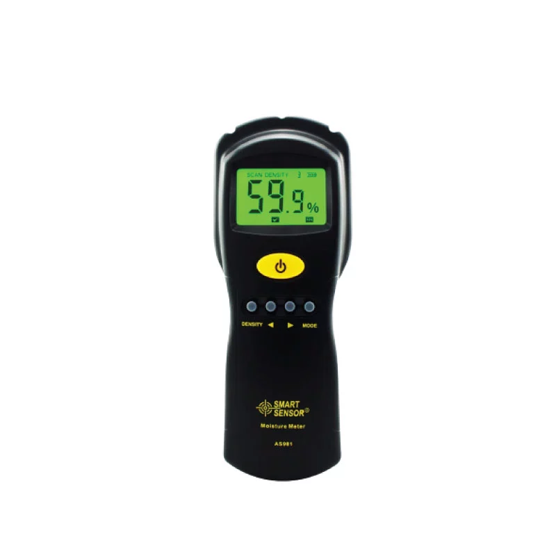 SMART SENSOR Moisture Meter (AS981) IS professional wood moisture meter that is designed for measuring the moisture content in wood, bamboo, paper, herbals (also paper and cardboard) and hardened materials (mortar, concrete and plaster) as well as the environment temperature. The measurement provides the basis for whether it needs to continue to dry or not, to better safeguard the wood quality for woodworking, building construction and agriculture industry.
